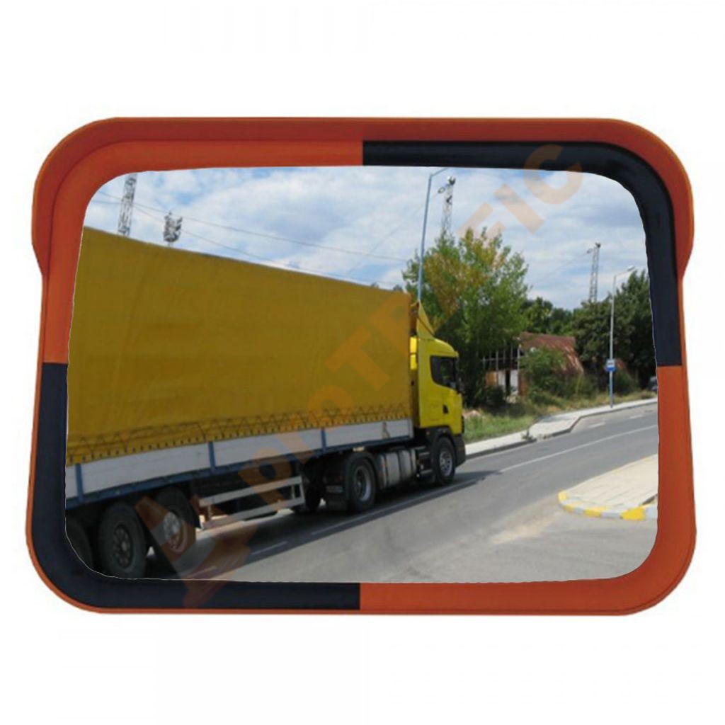 Oglinda de circulatie 600 x 800 mm dreptunghiulara, portocalie cu negru este foarte eficienta la intersecțiile rutiere cu benzi înguste, curbe ascuțite cu o vizibilitate redusă sau ieșirile din diferite locuri precum garaje. Oglinda de circulatie 600 x 800 mm dreptunghiulara, portocalie cu negru este confecționată dintr-un material numit din acril cu o rezistentă la impact mai mare cu 70% decât sticlă. Oglinda dreptunghiulara poate fi fixată pe stâlpi cu diametru de 50-85mm, semafoare sau pe indicatoarele de trecere de pietoni. Oglinda rutieră este livrată cu sistemul de prindere pe stâlp (diam. 50-85mm) și pentru perete.