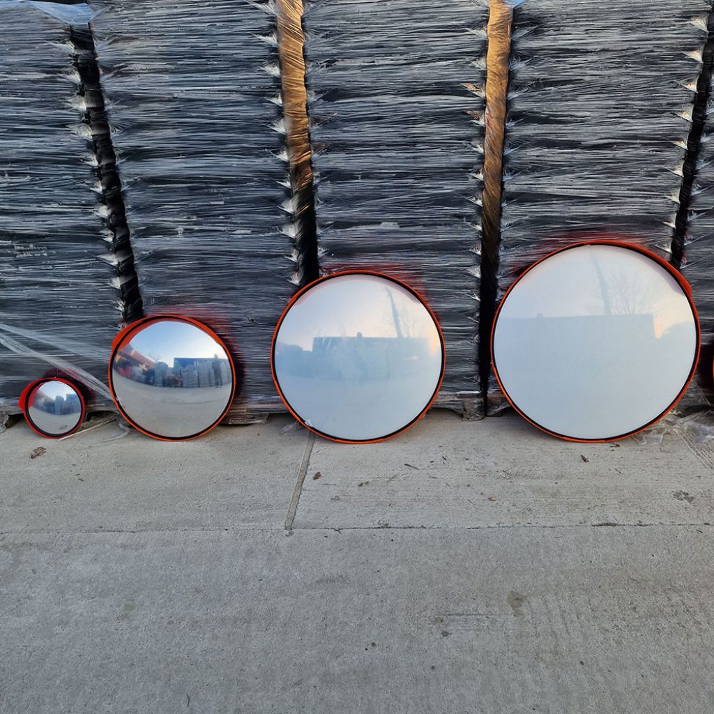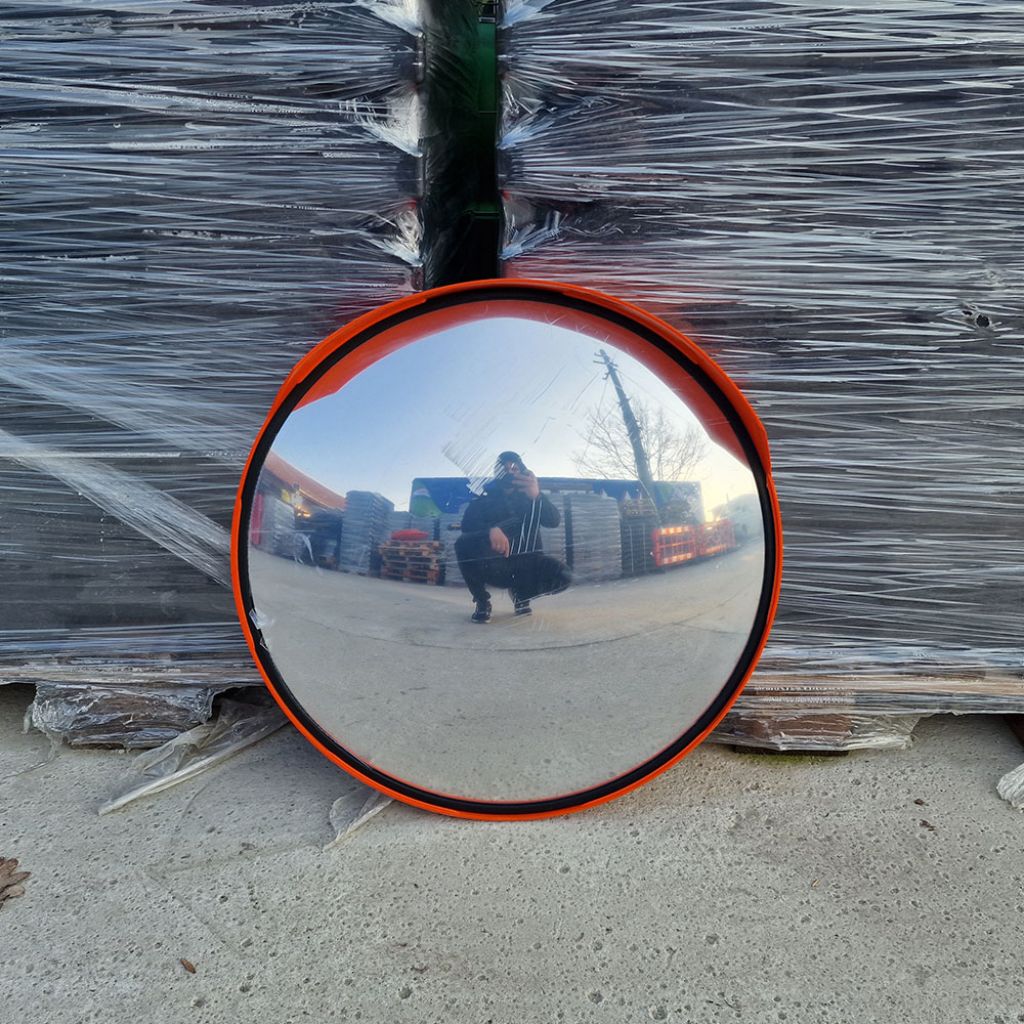Oglinda rutiera 450 mm, convexa, portocalie, rotunda este un dispozitiv folosit pentru a furniza vizibilitate suplimentară în intersecții, parcuri de mașini sau în alte locuri cu trafic intens. Aceasta este proiectată pentru a spori siguranța rutieră și pentru a preveni accidentele prin furnizarea unei perspective mai largi a zonei respective. Oglinda are o lentilă de aproximativ 45 de centimetri în diametru și este montată pe un suport stabil, de obicei din metal sau plastic rezistent.