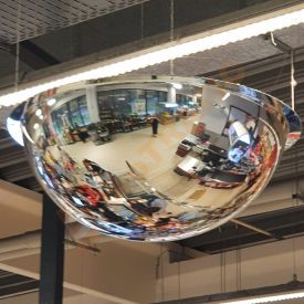 Oglinda siguranta depozit 360 grade, diametru 1000 mm, de interior o utilizăm cu succes în afaceri precum magazine, spații comerciale sau spații industriale. Această oglinda siguranta depozit 360 grade, diametru 1000 mm, de interior se fixează pe tavan cu ajutorul unor șuruburi. Oglindă de supraveghere este special concepută pentru observarea și demascarea hoților. Materialul din care este confectionată este acril ce este cu 70% mai rezistent decât sticlă, este mai ușor și rezistă mult mai mult timp.