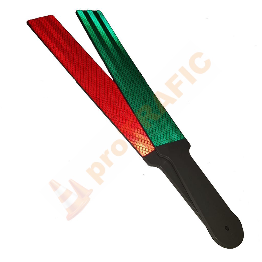 Paleta reflectorizanta de dirijare Verde Rosu are că destinație atât dirijarea vehiculelor rutiere aflate în traffic de către agenții de circulație, cât și dirijarea vehiculelor rutiere în zonele unde au loc intervenții la partea carosabila de către angajații firmelor de construcții. Paleta reflectorizanta de dirijare Verde Rosu este confecționată din ABS injectat. Corpul paletei este format din două părți, partea de prindere având formă unui mâner, respectiv partea activă peste care este aplicată folia reflectorizanta.