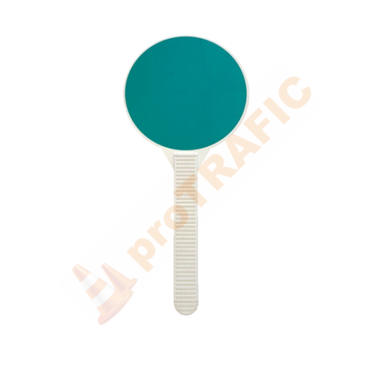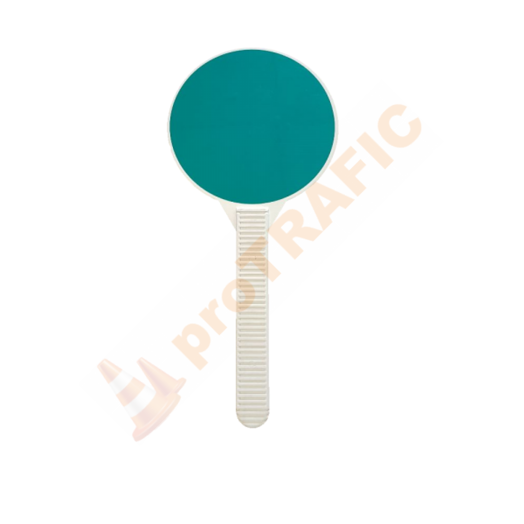 Paleta reflectorizanta de santier Verde Rosu are că destinație atât dirijarea vehiculelor rutiere aflate în trafic de către agenții de circulație, cât și dirijarea vehiculelor rutiere în zonele unde au loc intervenții la partea carosabila de către angajații firmelor de construcții. Paleta reflectorizanta de santier Verde Rosu este confecționată din plastic pe care este aplicată folie reflectorizantă verde respectiv roșie. Paletă are diametrul de 200 mm.