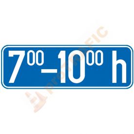 Specifică intervalul orar, între care se respectă regulile impuse de indicatorul rutier sub care este amplasat panoul din imagine.
