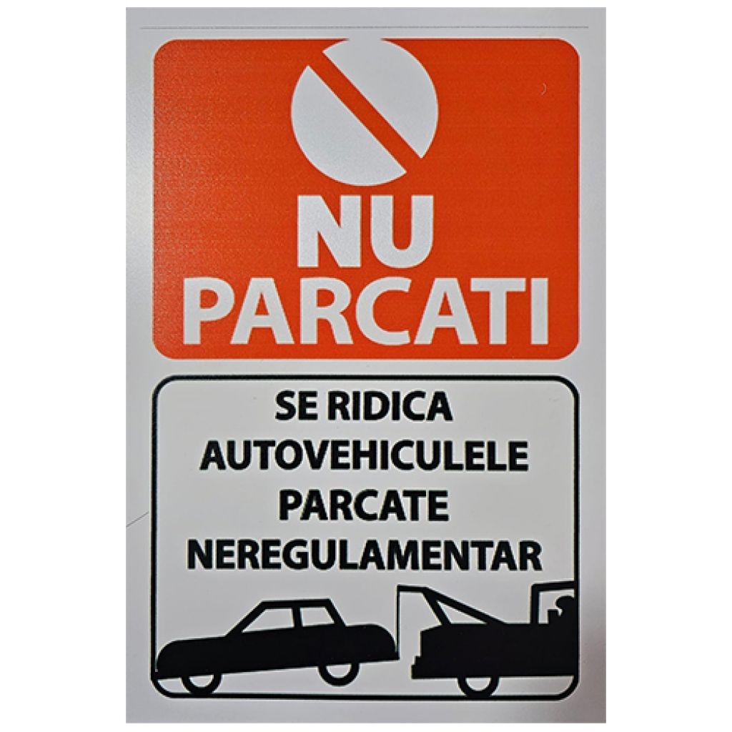 Placuta parcare PVC NU Parcati Se ridica autovehiculele parcate neregulamentar 200x300mm