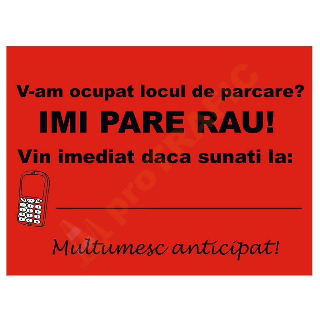 Acest model de plăcuță se poate pune pe bordul mașinii atunci când parcați temporar pe un loc de parcare ce nu vă aparține.