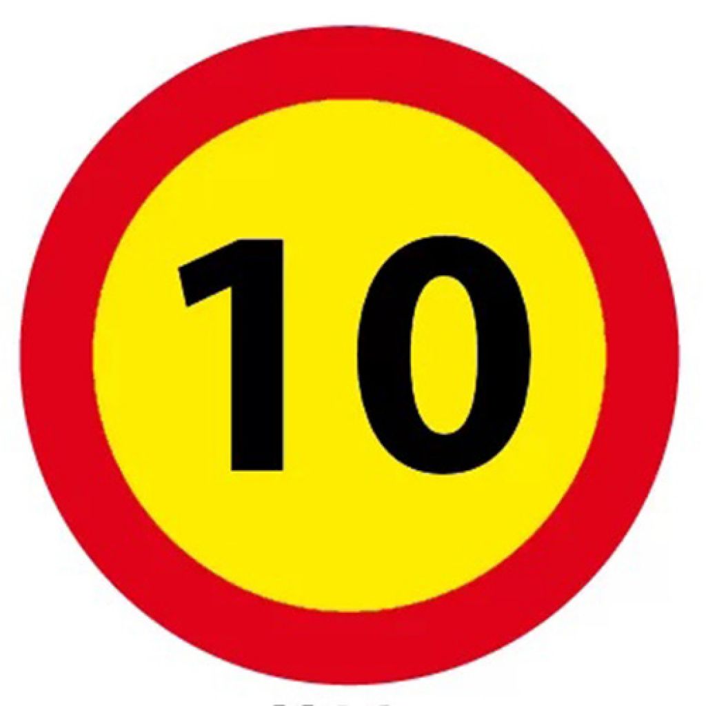 Semn rutier temporar U13 Limita de viteza 10 km, Diametru 800mm, clasa 2 semnalizeaza o restrictie temporara de viteza impusa intr-o anumita zona, pentru siguranta traficului.