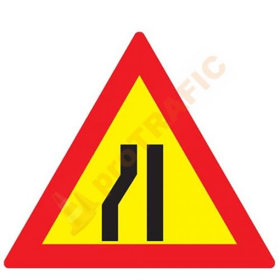 Acest indicator rutier se întâlnește pe sectoarele de drum unde se execută lucrări pe partea carosabilă. În acest caz, conducătorul auto este avertizat că urmează un sector cu drum îngustat pe partea stanga.