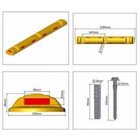Separator de sens cu catadioptrii, din cauciuc, lungime 1200mm, galben