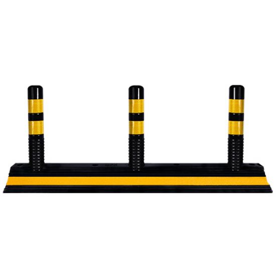 Separator de sens din cauciuc, cu trei stalpisori H45 cm si lungime 140 cm, este folosit pentru delimitarea benzilor de circulatie si dirijarea traficului. Fabricat din cauciuc suporta impacturi si conditii meteorologice variate. Stalpisorii flexibili au benzi reflectorizante pentru vizibilitate sporita. Se fixeaza pe carosabil cu dibluri si suruburi, asigurand stabilitate. Ideal pentru drumuri, parcari si piste de biciclete.