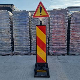 Set baliza reflectorizanta, baza 28 kg, clasa 2, cu indicator triunghiular este un dispozitiv utilizat in ghidarea traficului in zone periculoase ca zonele cu lucrari, santiere sau in orice zona ce necesita semnalizare rutiera.