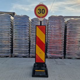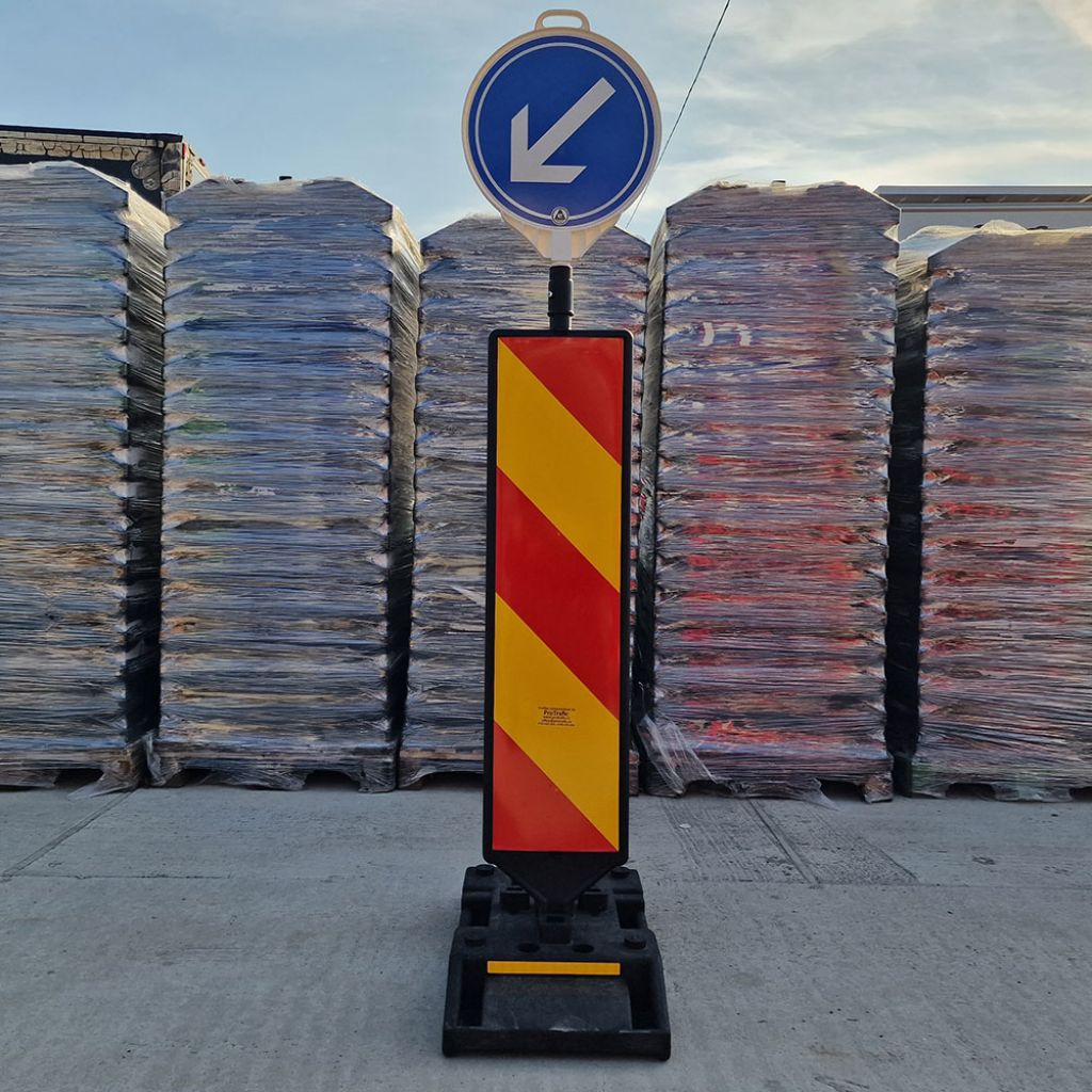 Set baliza semnalizare, folie cl 2, baza 15 kg, cu indicator rotund sunt echipate cu indicatoare rotunde cu diferite semne ce au aplicata folie reflectorizanta.