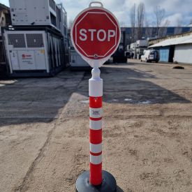 Stalp atentionare mobil 1200mm, 12kg cu indicator STOP cu baza de plastic umpluta cu nisip si o greutate de 12 kg, este un dispozitiv mobil si stabil, ideal pentru marcarea diferitelor spatii sau ghidarea traficului in diverse contexte. Acesta este confectionat din plastic durabil, este usor de manevrat si rezistent la conditii atmosferice variate.