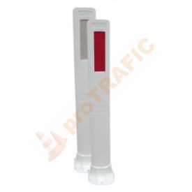 Stalp de ghidare lamelar cu suport confectionat din material plastic, cu o secțiune transversală în formă de arc de cerc și o nervură perimetrală, care le conferă o elasticitate perfectă. Acestia sunt rezistenți la coliziuni repetate ale vehiculelor, cu deformări minime și fără a produce pagube asupra vehiculelor. Pe partea de sus a stâlpului, pe ambele fețe, sunt prezente amprentei pe care este aplicată folie reflectorizanta de culoare albă, respectiv roșie.