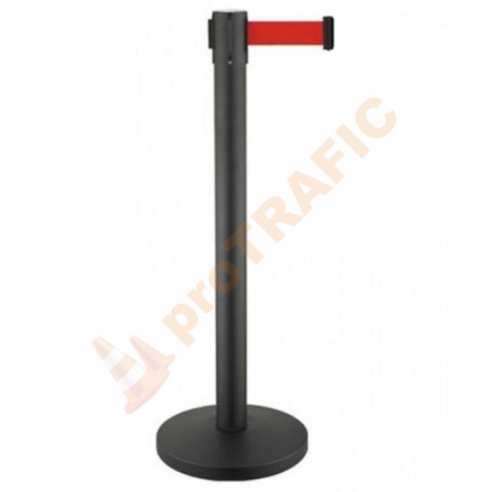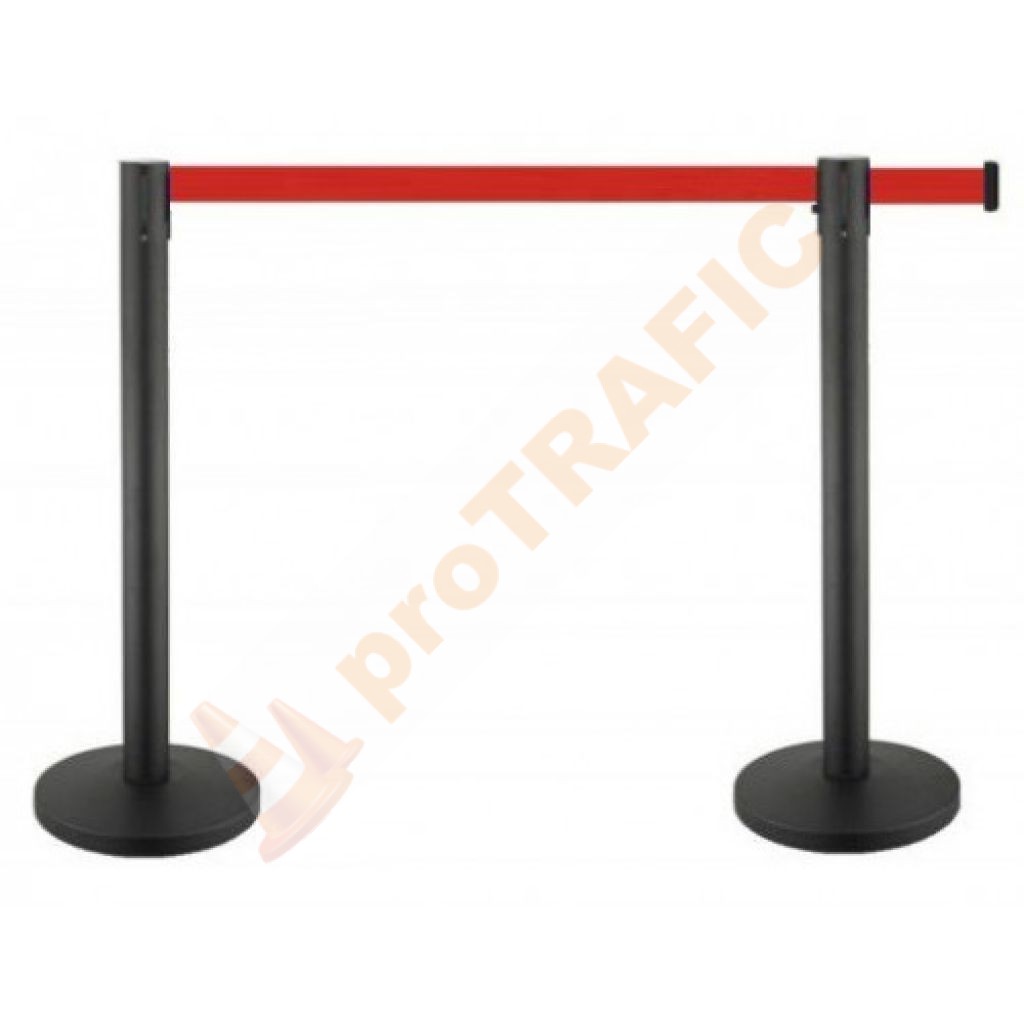 Stalp delimitare negru cu banda rosie folosit la delimitarea zonelor dintr-o anumita incepere unde nu este permisa intrare, la intrarea in restaurante sau hoteluri sau la diverse evenimente sau spectacole.