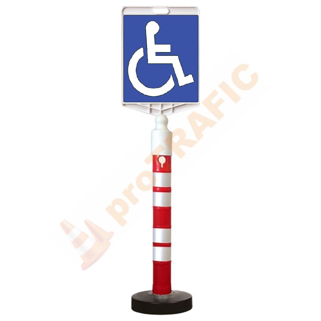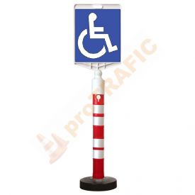 Stalp mobil antiparcare 1200mm, 12kg cu indicator Persoane cu dizabilitati cu baza de plastic umpluta cu nisip si o greutate de 12 kg, este un dispozitiv mobil si stabil, ideal pentru marcarea diferitelor spatii sau ghidarea traficului in diverse contexte. Acesta este confectionat din plastic durabil, este usor de manevrat si rezistent la conditii atmosferice variate.